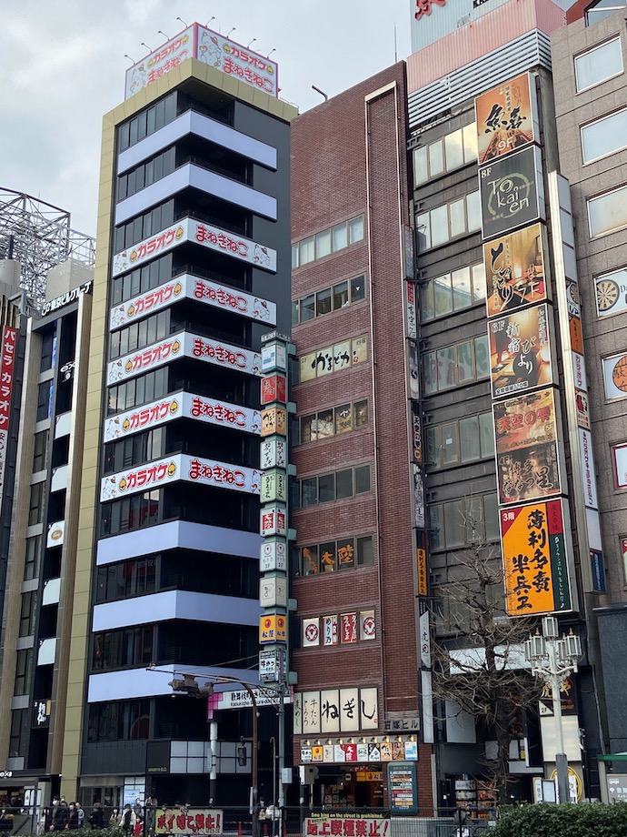 街を歩き回り看板の写真を撮るのが趣味といえば趣味だ。鉄オタならぬ看板オタみたいなものだろうか。新宿歌舞伎町は街の新陳代謝が早いので、一年も経てばビルのテナントが入れ替わっているのは当たり前だが、ビル一棟丸ごろ変わってしまったのは初めて見た。白い部分がそれぞれ居酒屋だった居酒屋ビルで、その前はビル一棟全体が一軒の居酒屋だった。居酒屋受難の時代を体現するような「白ビル」を見つけて、心が痛んだ。やはりコロナの2年を持ち堪えるのは無理ゲーというものなのだろう。しかし、靖国通り沿いでこの始末だ。裏路地に行ったら廃店舗の死屍累々ということになっているのか。