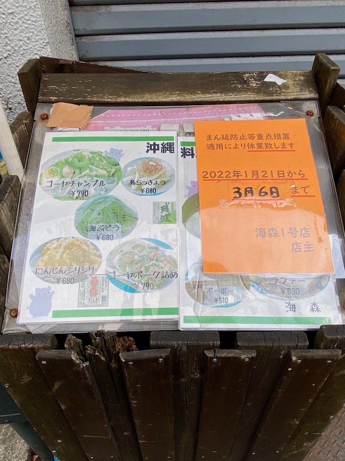 池林房の近くにある沖縄料理の店は池林房出身者がやっていると聞いて、何度か行ったことがある。池より大きく海のように、林より大きく森のようにということで「海森」という店名になったと聞いて、ほうほう、なるほどねと思った。師匠より羽ばたいて大きく成長したいというのは、正しい野望だと思うのでよい店名だと感心した。そのお店もどうやらしばらくお休みらしい。