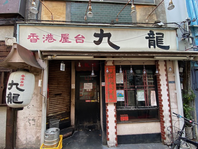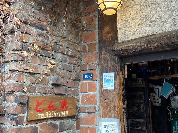 新宿三丁目の飲み屋街の中心部にある、存在感が強烈な「どん底」の周りは、ビルにもならないまま、二階建て、三階建の古い建物というか低層建築が雑然と立ち並んでいる。昭和中期からあるとすれば、もはや半世紀以上経っているはずで、老朽化というか古びた外観というか、どちらにしても風格ある建物が多い。そんな場所なので、店も、店の看板もユニークなものばかりでついつい写真に撮りたくなる。