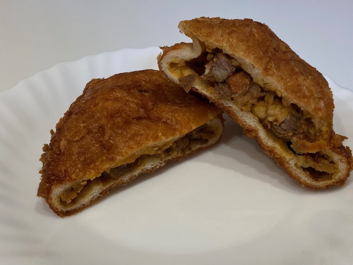 中にフィリングが詰まったパンでよく起きる現象、最後の一口はパン生地だけという位がっかり感もない。最後のひとくりまでカレーと生地の調和が楽しめる。
