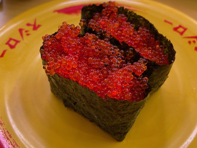 気を取り直し、キャンペーン中の蟹のほぐし身とウニの包みを注文した。まずまずのビジュアルで、こおすすめメニューとしては「アリ」だった。この海苔を巻かない海苔巻き?も、スシローメニューとしては、すっかり定着した感じがする。ただ、一口で食べるのがちょっと面倒くさいサイズだ。そこの改善はどうなっているのだろう。ネタ単体で勝負ではなく、アレンジメニューでバラエティーを作り出すのは、まさに創作だと思う。ただ、豪速球ではなくかなりスピードのゆるい変化球みたいな感じがする。