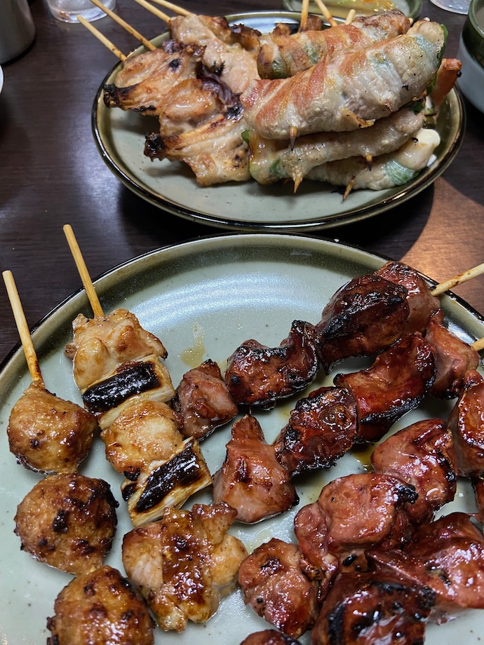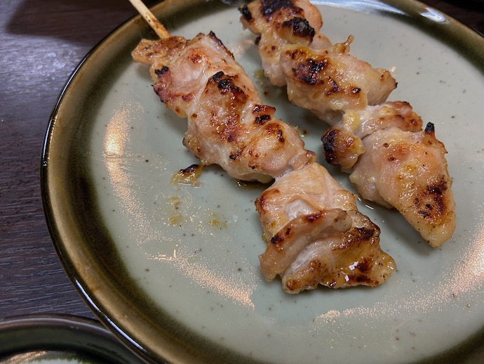 小鉢を散々食べた後で、焼き鳥をしめに頼むのがこの店ではよろしいようだ。冬であれば燗酒、夏であれば升酒を冷酒で頼む。