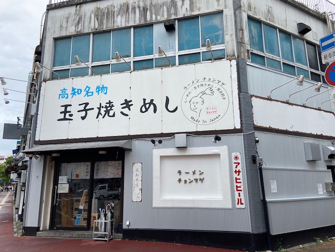 今回の高知市内街歩きで一番謎だった看板というかお店はこれだ。焼きめしの店なのだと思うが、ラーメンチョンマゲが店名のような気がする。確かめるためにはお店に入って実食するしかないのだが。やはり時間が足りない。次回に持ち越しの宿題にしようと決めた。