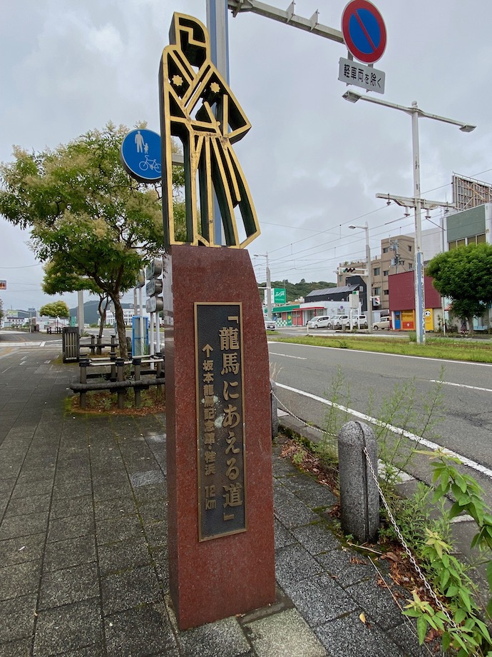 久しぶりの高知で、ちょっと気張ったランチを食べようと川沿いのお店まで歩いて行く途中で見つけた。モニュメントというか道標というか、有名な懐に手を入れた坂本龍馬をデフォルメした面白いデザインだ。この町は、とにかく龍馬推しなのだなとわかる。龍馬は大河ドラマで有名になった高知人ナンバーワンだと思うが、ナンバーツーがいないくらいダントツの知名度だろう。
