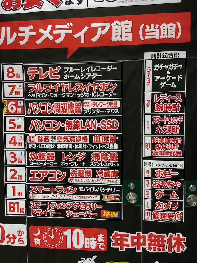 新宿東口にあるヨドバシカメラは、時代を移す鏡だと思う。その時の消費者の関心の高さ、つまりよく売れる商品を1階に並べ、階数が上がるごとに商品の人気度合いが落ちている、という見方をしているのだが。