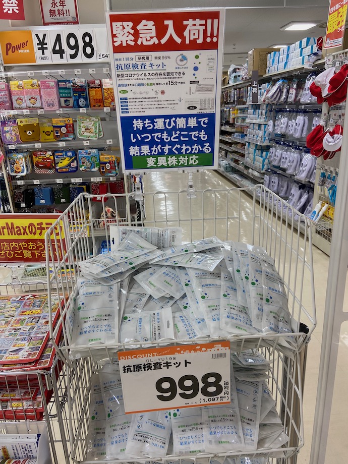 抗原検査キットが千円を切る価格でワゴンセールというのは、これまたすごい光景だ。2年半近くになる対コロナ戦線で、これが1番の成果ではないか。行政も医療機関も信じられないという、世の人々のニーズ、これに極まるだ。2年前であれば行列ができて、おひとり様二個までみたいな制限販売だったろう。今では、一山いくらの商品で隔世の感がある。無料PCR検査にできる行列を見た時の感覚とはちょっと違うタイプの驚きだった。