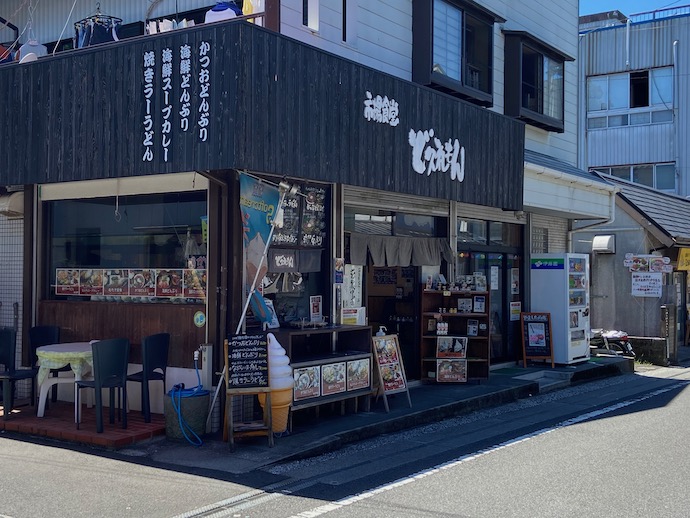 その市場の前に、小ぶりな食堂がある。市場で売っている魚を使った料理も食べられるが、イチオシはスープカレーと焼きうどんだ。焼きうどんは自家製漁師のラー油を使った、コッテリとした味わいのもの。焼きうどんなのに腹持ちが良いという不思議な代物だ。