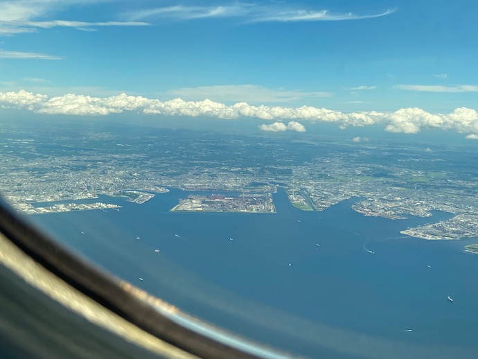 撮ったのがこの写真だ。川崎から横浜にかけての工業地帯がはっきりと写っている。海と人工物しかない。東京周辺特有の見渡す限り建物で埋め尽くされた「繁栄の証」というやつだ。