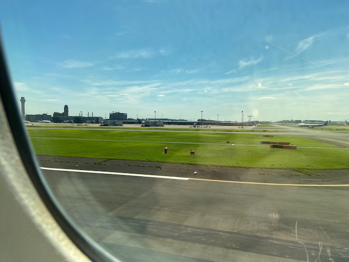 珍しく機内から写真を撮った。搭乗口から滑走路に出て離陸するまでの写真をあれこれとって見た。普段であれば、このタイミングはそろそろ昼寝を開始する頃だが、今回は空に飛び立つまで窓の外の景色を見ることにした。なんだか、気分は小学生が夏休みで祖父母の家まで一人旅をするような感じだった。