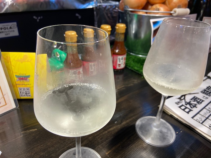 信州の酒を特別に置いているというので、日本酒を注文した。一番のおすすめはなんとワイングラスで出てきた。それ以外の銘柄も特製徳利というか片口もどきで提供される。ノンベイの趣向をそそるにくい演出だった。ついつい値段も聞かず注文したので、会計の時にちょっと痛い思いをしたが、それもまた屋台な飲み方経験だろう。