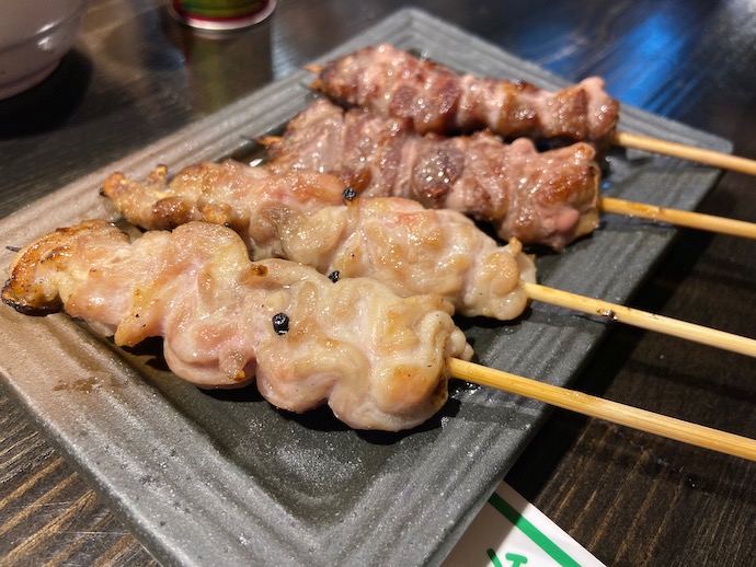 屋台が立ち並ぶ横丁の雰囲気を模しているので、簡単にハシゴ酒ができるのが良いところだ。一軒目は博多の屋台風の店で博多名物とハイボールを楽しんだ。隣にあるたこ焼きとハイボールの店も気になったが、二軒目は松本からやってきた焼き鳥屋にした。