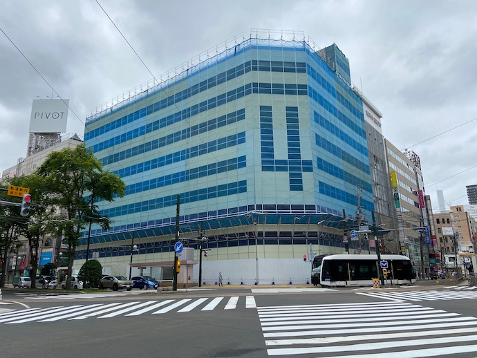 札幌市内中心部、ランドマーク中のランドマークであった4丁目プラザが現在建て直し工事中だ。それでも、4プラ・プライドとでもいうべきか、工事中の囲いに「4」のマークがある。これは粋な計らいというものだろう。