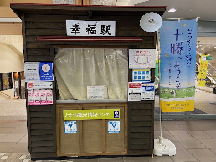 高架ホームを降りた駅の一階には、観光案内所があり、幸福駅をモチーフにした可愛らしいものだった。ただ、幸福駅のブームは昭和中期だったはずで、今ではどんな人たちが幸福駅(跡地)を訪れるのだろうか。そもそも幸福駅の存在を知っているのか?などど、あれこれ疑問が浮かんでくる。