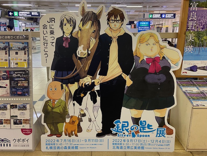 この広告を見つけたのが、札幌から埼玉に帰る直前だった。このお話「銀の匙」は好きなコミックだったので、展示会を見に行きたかったなあとつくづく残念に思った。今回は長逗留していたので時間はたっぷりあったはずなのに、帰る前日に気がつくとは、運がないというか縁がないというのはこういうことだろう。このお話はアニメ化もされたが、原作の少年コミックの出来が良かった。