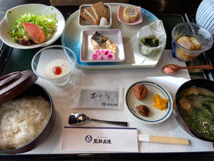 そこで、今回は朝食を食べてきた。最近のホテルではほとんどがビュッフェスタイルになり、朝から何だかもりもり食べなくてはならない気にさせられる。それはそれでビジネス旅行であれば、朝からパワーという感じで良いのだが、のんびりと旅をするときには、ちょっと豪華な朝ごはんにしてみたい。この旅館の朝ごはんは、その希望にぴったりと会っていた。