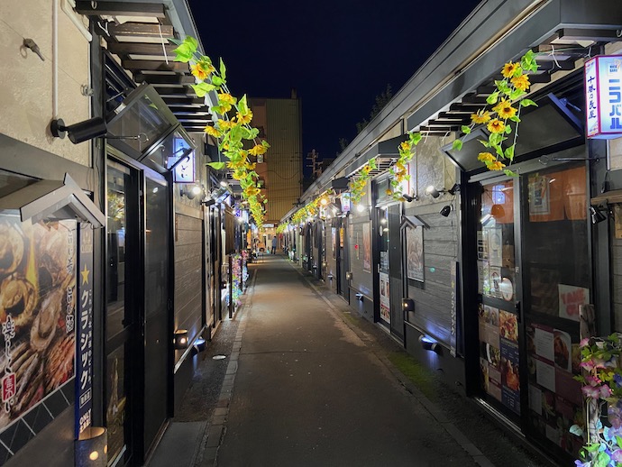 この新設横丁には酔っ払いの通行を邪魔する、道に置いたスタンド看板などはない。自転車が放置されていることもない。店頭に鉢植えの植物やプランターが置いてありもしない。整然とした雰囲気があるというか、生活感がしない。