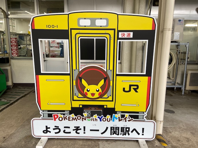 一関は、なぜか理由はわからないのだが「黄色いモンスター」にお出迎えされた。スタンプラリーが開催されているらしい。夏休みには子供向けの人気キャラスタンプラリーで乗客ゲットというのは鉄道各社でよく行われている。北東北限定のスタンプラリーのようだ。