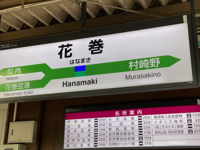 途中で降りたのは、あの有名な花巻駅だ。ちょっと前まで花巻といえば宮沢賢治の駅のはずだった。今でも宮沢賢治の記念館を訪れる人も多いだろう。ただ、最近の花巻スターは大リーグで二刀流の大活躍をするベースボールプレイヤーだろう。まだ現役選手だけに、駅に彼の「顔」が登場していないようだが。