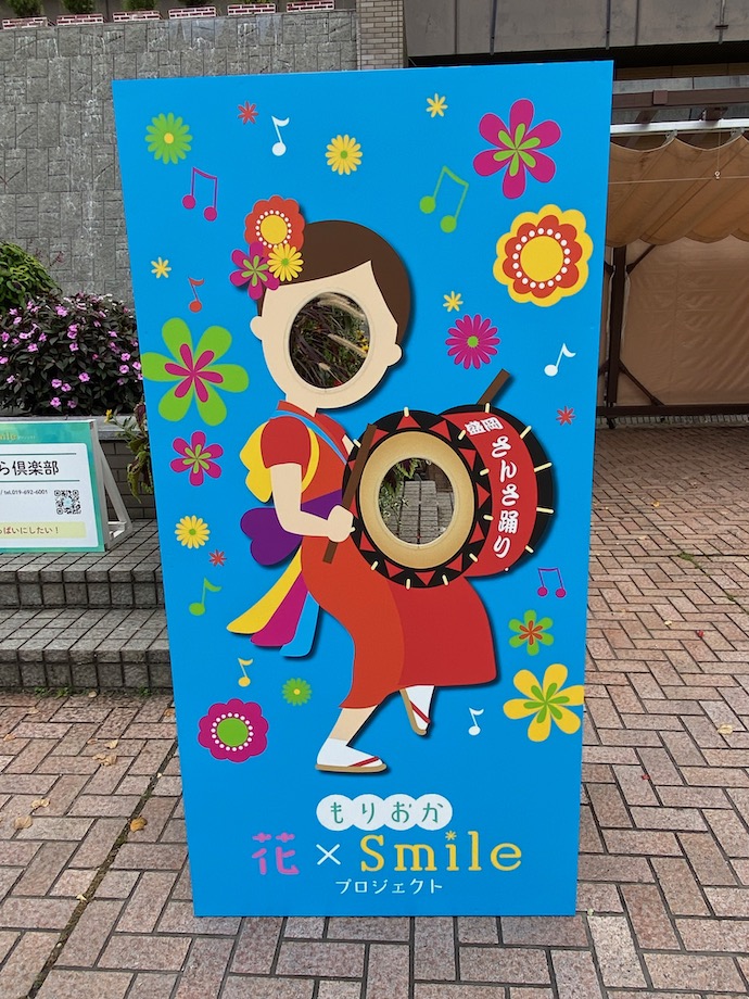 その工事の終わった広場は、どうやらイベントスペースになっているようで、お決まりの記念写真用パネルが置いてあった。さんさ踊りのパネルは、夏の終わりにちょっと悲しいが、この日の気温は30度を超えていたので、まだ夏の終わりというには早い感じもする。