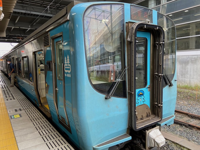 青い森鉄道の車両はなかなか自分好みで、車両全体が広告になっているラッピング形式より好ましい。特に木をかたどったキャラが良いなあと思う。