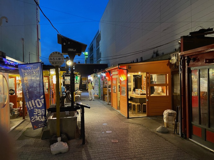 八戸で夜の名所といえば、観光案内にも乗る「みろく横丁」ということになるだろう。屋台村の元祖的存在だ。帯広の屋台村は、北海道内では有名だと思うが、この八戸みろく横丁はもう少し広域で知られているような気がする。