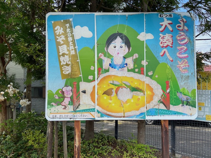 大湊の駅前にあった観光客向け看板にある「みそ貝焼き」は、今回食べられなかった。店ごとにちょっとずつ味が違う気がするので、あちこちで食べ比べしてみたいと思うのだが。次回はなんとか挑戦しよう。