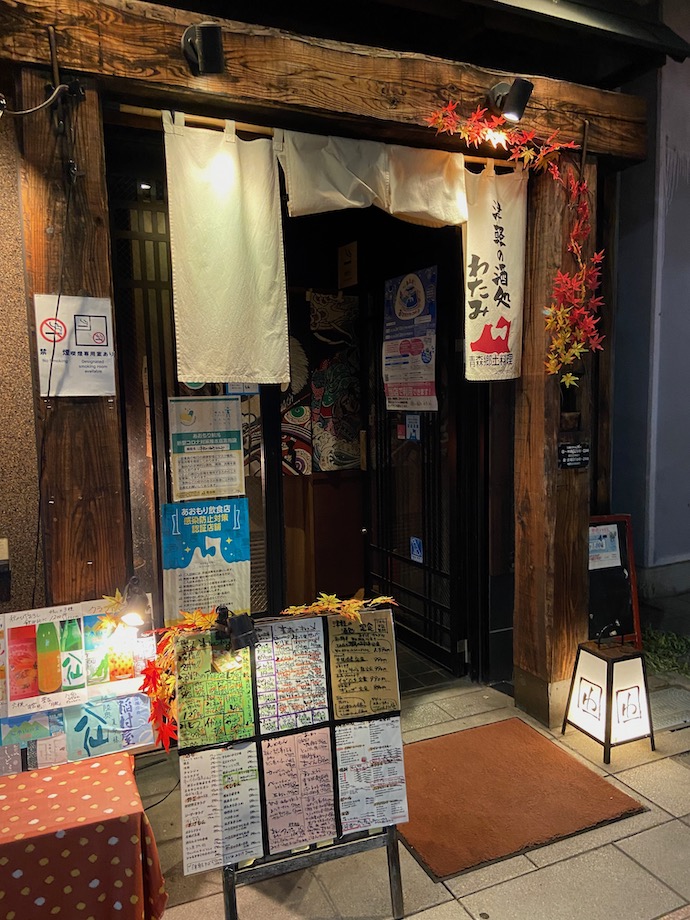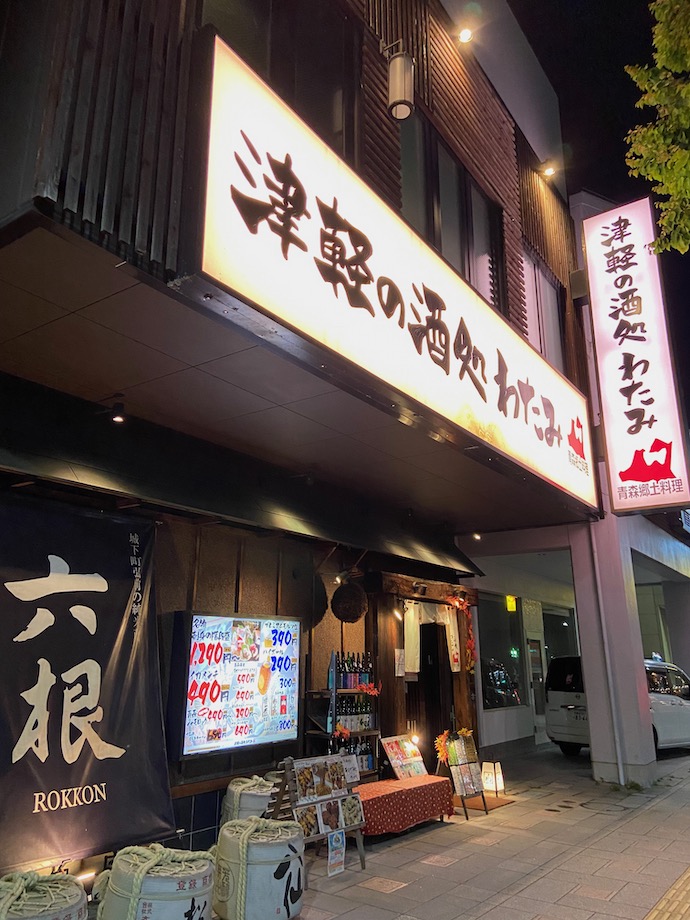 弘前で晩飯がてら居酒屋に行きたいのだが、とホテルの方におすすめの店を聞いた。そうしたら、全国チェーンだが地元料理を食べさせるので面白いと言われたのがこの店だった。看板だけ見ると、あのチェーン店なのかと言いたくなる。たまたま店名が同じだけではないのか?