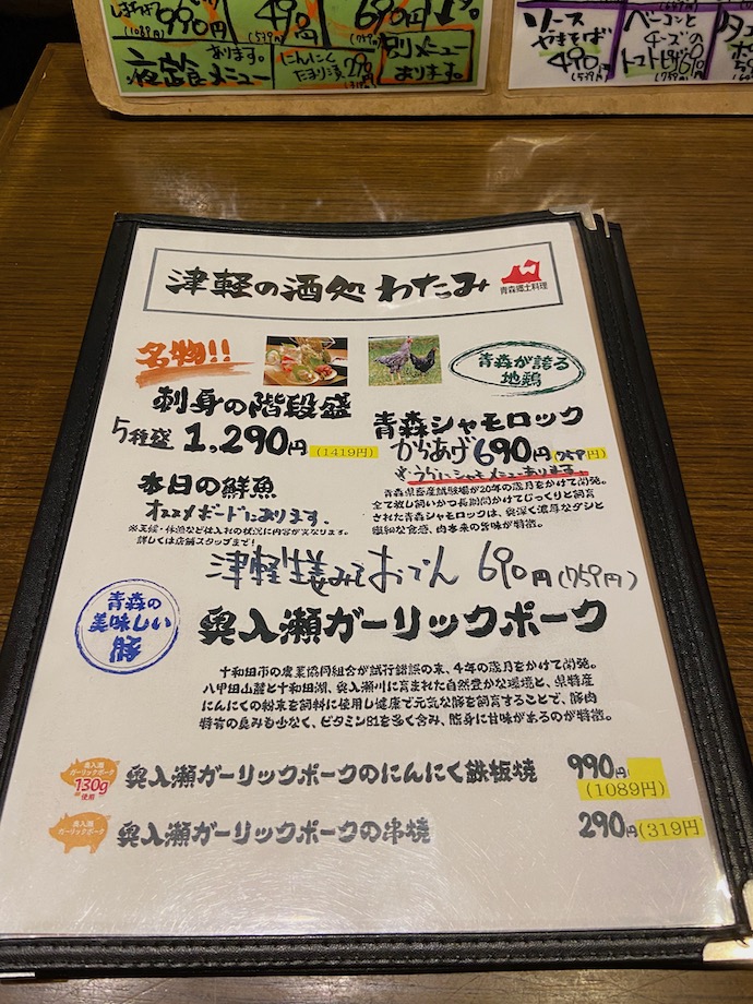 刺し盛りを楽しみながら、そんな衰亡業界の失策を考えていた。東京での業態転換した店を見てモヤモヤとした疑問に思っていたことだった。それを弘前に来て解凍を見つけるとは………
