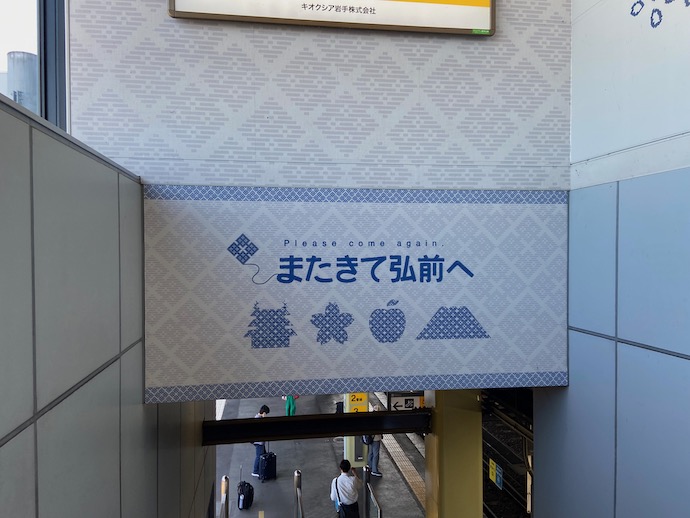 駅の待合室で2時間ほど待機した後、ようやく移動開始。また来て弘前の案内に「うん、うん」と頷きながら、ホームに降りると人影もまばら。