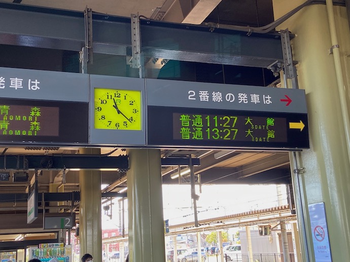 おまけに奥羽本線も似たような状況で、弘前から行けるのは大館まで。その先は鉄道不通でバスが代行する区間がある。大館から東能代まではバス、東能代から先は鉄道再開とのことだった。想定していた日程は全面的に立て直し、おまけに大館まで移動する列車はほぼ昼前の発車になるので二時間待ち。慌ててみてもしょうがないし、そもそも各駅停車の旅に「急ぐ」という言葉は必要ない。(はずだ)