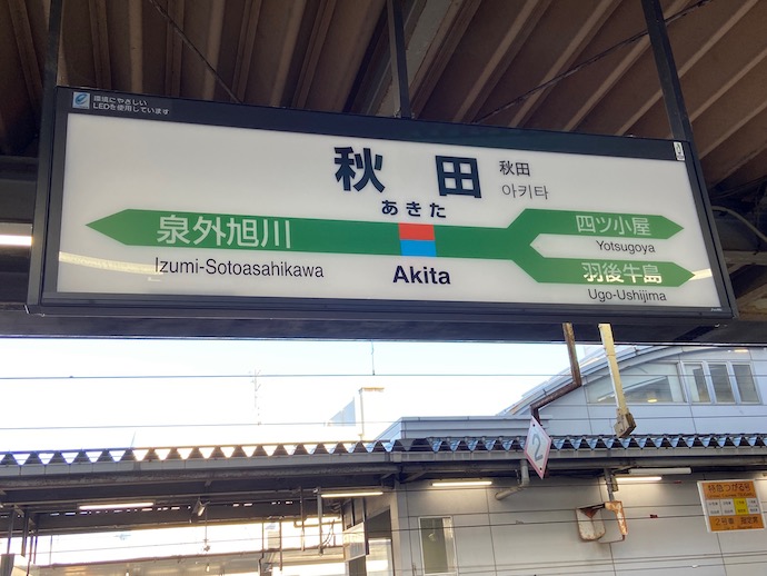 東能代から秋田までは各駅停車の旅に戻る。駅の周りは田圃と森だった。ここからは日本有数の米どころである八郎潟を通っていく。八郎潟には2度ほど来たことがある。北海道でもあまり見かけない、地平線まで田んぼという素晴らしい光景に出会える。