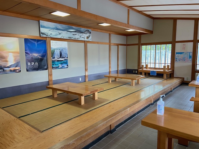 仮眠くらいできそうな畳敷きの休憩所は、確かに恐山という場所にはふさわしいような気がする。消毒用アルコールが置いてあるのが、いかにも今時の光景だった。