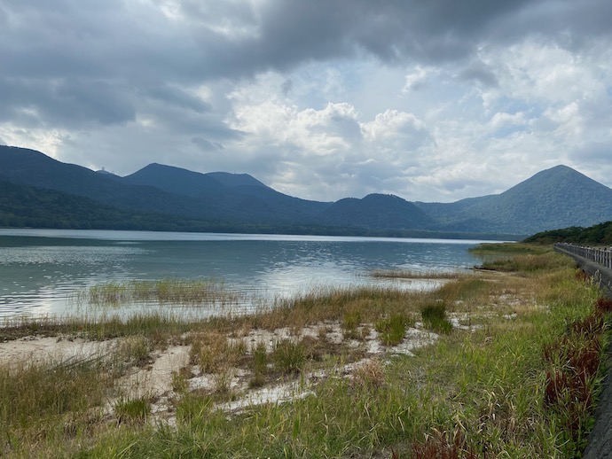 相当にくねくねした山道を登ること30分ほどでたどり着いたところは山上湖だった。湖のほとりには駐車場が広がっていた。バスで来たのは10人ちょっとだが、駐車場には30台以上の乗用車が停まっている。ナンバープレートを確かめてはみなかったが、車から降りてくる人を見ていると男一人が多かった。女性はグループかカップルで来るような感じがする。一人恐山は、迷えるジジイかオヤジが多いようだ。