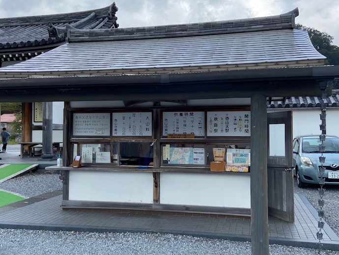 バス停の前には休憩所があった。バス待ちの参詣者が多い時は活躍しそうだが、この日は誰も中に入っていなかった。