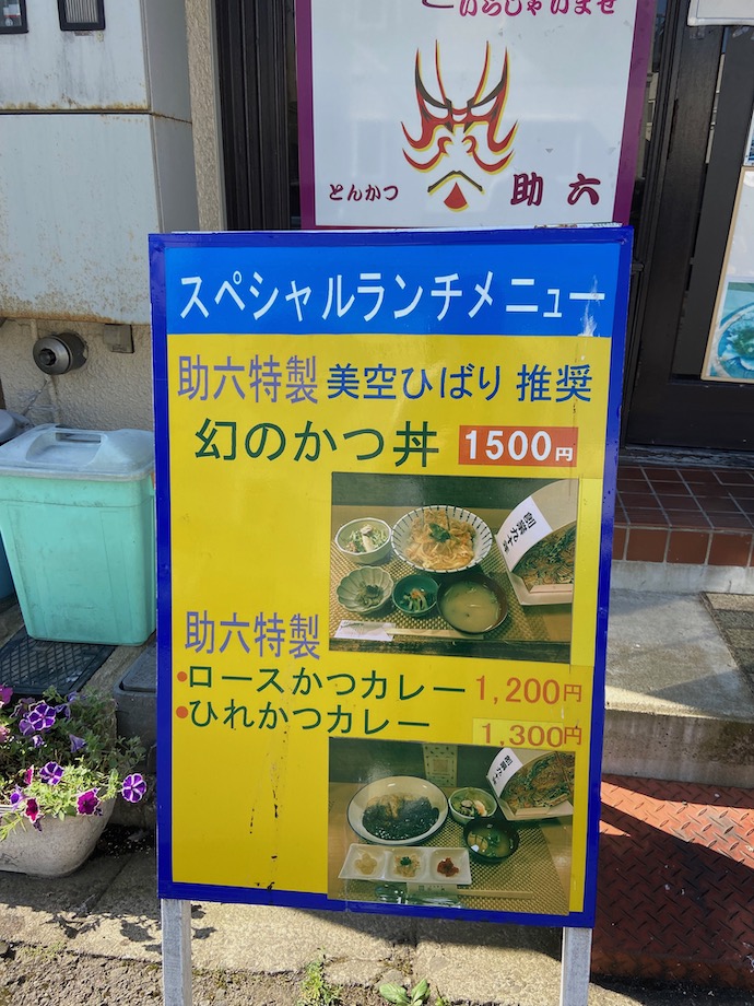 街を歩くとあちこちで面白い看板にであう。とんかつ助六は住宅地の真ん中にあった。こんな場所でとんかつ屋かと思わせる。ただ、興味が湧いたのは「とんかつ」ではない。