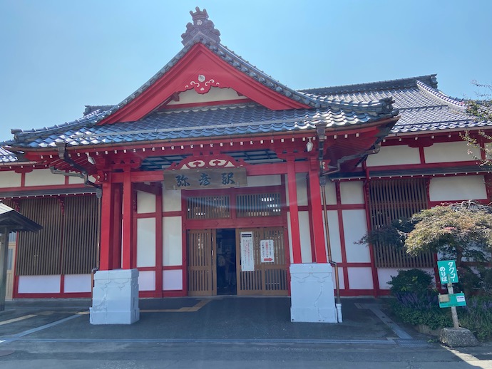 駅前の広場にはドーンと歓迎のサインがある。門前町という勢いがある。ただ、不思議なことに駅前には食堂もなければ、土産物屋もない。荷物を預けるコインローっカーはあったが、その数も少ない。どうやら、お参りするのに鉄道でくる客は多くないみたいだ。同じ列車で降りた客は十人程度、それもほぼ高齢者(男性比率高し)だった。若い女性が集まるところでなければ、「お店」は成立しないのだなと改めて思う。