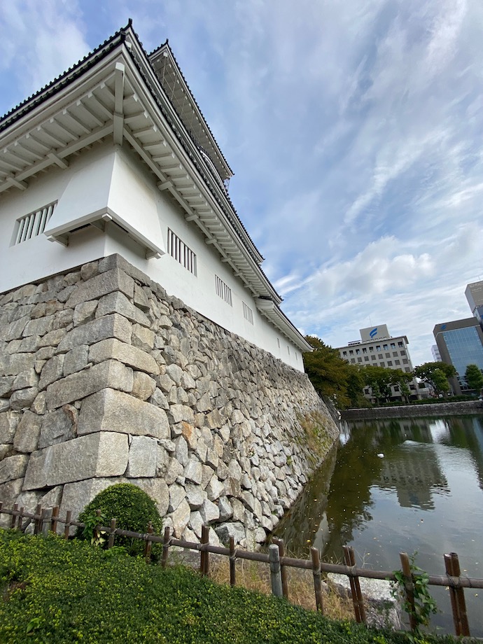 城郭を見る時、石垣の美しさは独特のものだ。そして、このお堀に面して立ち上がっている「角」の曲線こそが美の極み。なだらかなアーチ型の角、稜線はいつみても感動する。これも石垣の高さが関係するのだろうが、お城によって微妙にカーブが異なっている。それを見るのが、城めぐりの楽しみの一つだ。