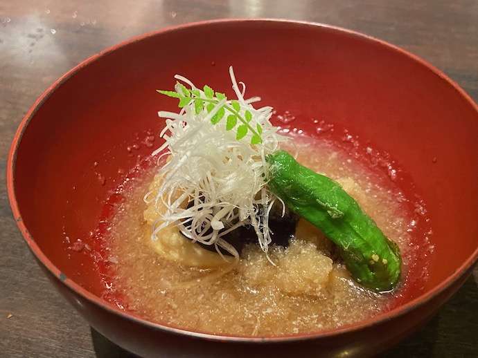 日本以外の国の人たちから見れば、出汁の中に「野菜の根」をすりつぶして投入したものということになるのかもしれないが、おろし餡はいつ食べても美味いと思う。これは調理人の技術で味の差が雲泥ほどに出てくる和食の華ではないかとまで思う。