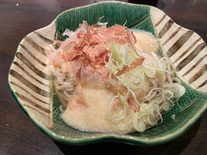 お腹いっぱいになりそろそろ帰ろうかなと思うタイミングで、締めの越前そばが出てきた。これも蕎麦というより蕎麦料理だろう、と変なセルフツッコミを入れながら一口食べてすっかりありがたくなってしまった。
