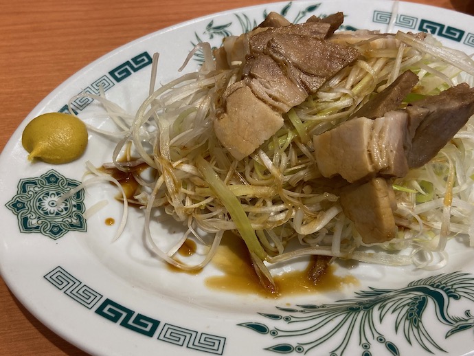 だいたいの店ではネギ8対チャーシュー2くらいの割合で出てくる。ネギが値上がりする時期になるとネギの量が減る店が多いような気がする。簡単なつまみとしてお手軽価格で提供されていればネギ中心で良いのだが、中には単品料理としてもかなり高額な値段を取る店もあり(酢豚より高かったりする)、そうなるとぼったくりメニューだなと敬遠してしまう。