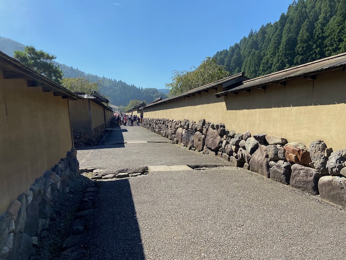 当時の街並みを再現している施設があった。その街並みで土塀沿いの道を歩く。門をくぐると武家屋敷があった。当時の様子を再現している。
