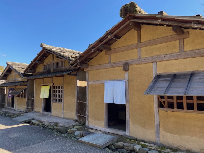 武家屋敷の他に民家というか商家も復活再現していた。これは、武家屋敷と違い小さな窓があるだけのワンルームなので、中は相当に暗い。昼でも作業ができるのかと思うほどだ。あんなに暗い中で作業をしていたのだろうか。戦国期の人間は、暗闇特化型の視力を持っていたとも思えないのだが。それとも猫族のような夜向け視力があったのか。