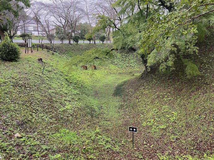 堀の跡も、一見すると水もなくなり雑草や樹木が生えている。しかし、当時は身を隠したり登る時の手がかりになる「木」や「草」を放置したはずがない。石垣ではない堀の壁は、滑りやすい粘土で覆われていたはずだ。そもそも、城の周りは全ての樹木を伐採して禿山にしていなければ、夜襲の時など隠れ場所を放置することになる。そんなことをするおバカ武将は戦国期を生き延びられるはずがない。いま現在で見る公園とその樹木を、全て取り払った姿を脳内CG?で再現する。それが城巡りの楽しみというか必要能力だ。