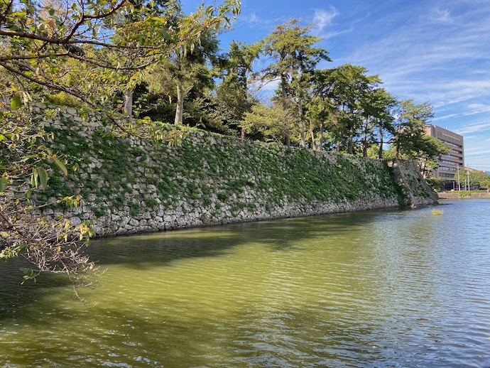 城巡りをしていつも思うことだが、石垣の上に大きな木を植えるのはやめてもらいたいものだ。城跡を保護するというのであれば、公園としての植樹など勘弁してよというもので、もし木を植えるなら、その意味をきっちりと説明してほしい。史跡保護という観点で言えば、全国の城跡は、明治政府による暴政、城の破却政策の結果、原型をとどめていない。それが100年も続き、勝手に生えた木が大きく育ってしまい、まるで昔から城には木を植えていたような勘違い?が起きているのではないか。少なくとも殿様が本丸周りに居住していて、そこに庭園を作っていたという場合以外は、城の中に木を植える必然性はないはずだ。