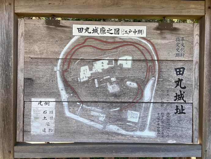三つ目の城は、伊勢国南端部に残る田丸城だった。ここも松坂城と同じ平山城だった。ぽこんとした小さな山というか丘の上に建っていた。山の上に城跡を見に行こうとしたが、なんとそこは学校になっていた。今時のご時世で、平日昼間にノコノコとよそものオヤジが学校に入って行けば、間違いなく不審者、いや、犯罪者扱いされる。学校の正面玄関手前まで行って、引き返すことにした。