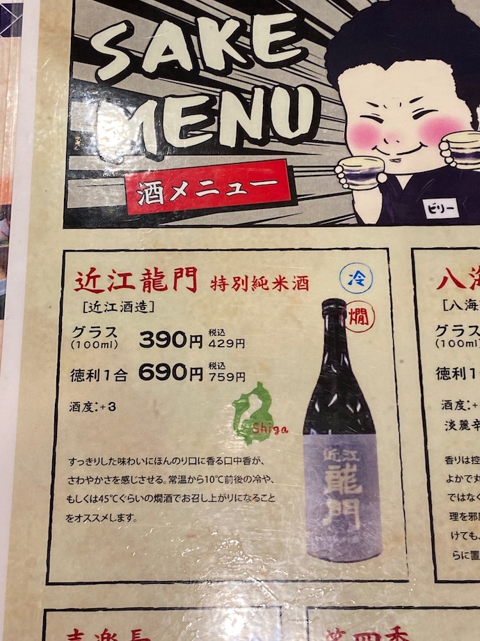 琵琶湖周辺で地のものと言ったら鮒寿司くらいしか思い出せないほど、馴染みのない土地だ。それでも日本酒は地場にある酒蔵のものを置いていた。すかさずそれを注文することにした。近江の酒を飲むのは初めてだった。
