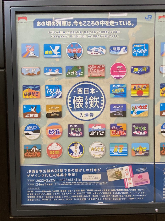 帰りの新幹線に乗ろうと、金沢駅を歩いていて見つけたポスターは、西国に暮らす人を羨ましいとおもわせる。ちょっとだけだが、西国に住みたい気分にさせる。西日本にはこんなに「ネームド特急」が走っていたのだなあ。生まれた場所が北海道で、いわば独立島国、青函海峡で本土とは分断されていたから、広さと鉄道網の充実した地であったにもかかわらず、特急列車は意外と少ない。おまけに学生当時は貧乏で、特急に乗る金などなかった。多少金が使えるようになった時には、特急どころか路線が廃止されてしまい、慌てて乗りに行ったりもした。