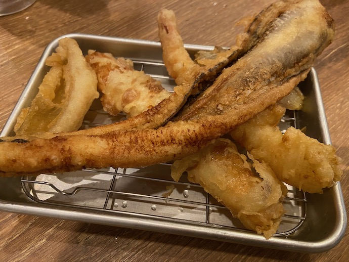 そのあげたて天ぷら提供スタイルが、この店でもそのまま使われている感じだが、それにしてもこのバラッとてんぷら置きました感は斬新だ。勘ぐってしまえば、あまり見かけは気にしないということだろうか。見栄えより味で勝負ということかもしれない。