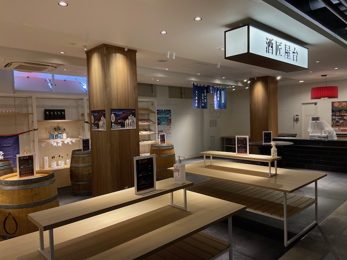 改札口を出ると、お土産物が並ぶショッピングエリアがあり、その先にフードコートがある。旅行者には優しい駅なのだが、ショッピングエリアとフードコートの中間に、なんと立ち飲みコーナーがあり、そこが改装されて広くなっていた。