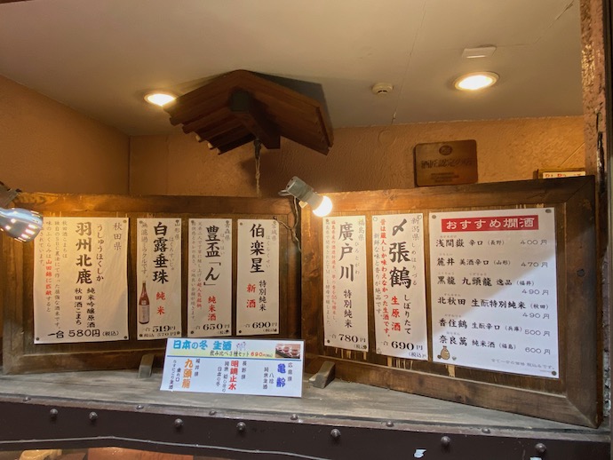 そこから徒歩1分にある居酒屋がこの日の集合場所だった。にほ飲酒の品揃えが良いと聞いていたが、店に入る前から「推し」銘柄がたっぷりと押し寄せてくる。階段脇のポスターを見ていたら今日はやはり濁り酒にするべきだろうと思った。濁り酒は冬のご馳走だと思うが、甘口なので飲み過ぎ中だ。一杯でやめる勇気が重要。